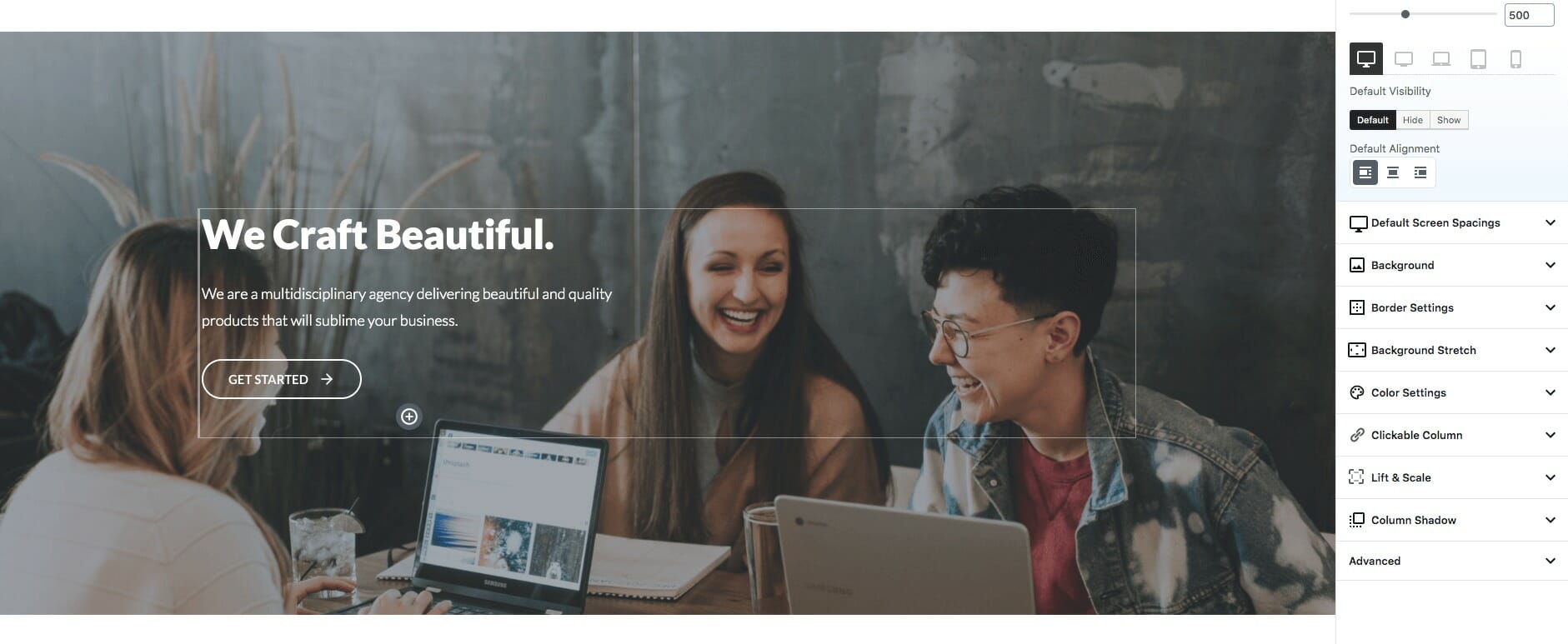 Nice yeah? 🙂 So we just inserted a nice intro area to our page with a parallax background effect, and a CTA button to engage our visitors, all happening within a minute.