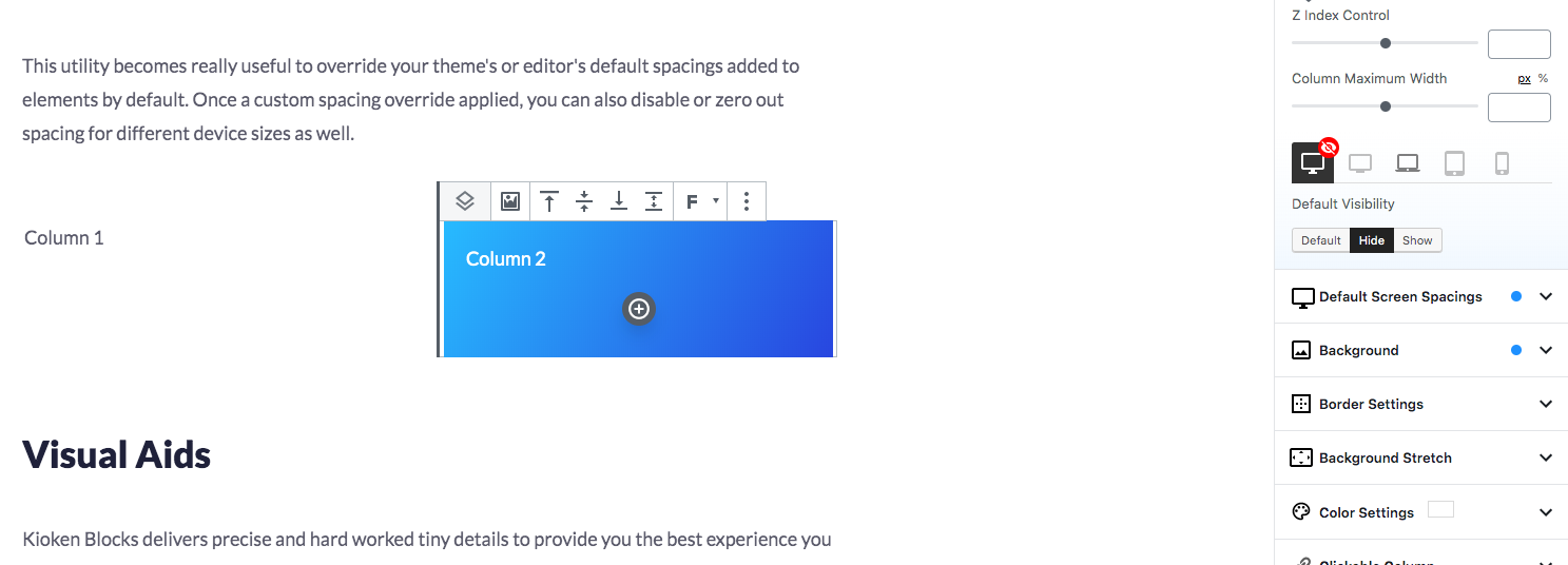 This utility becomes really useful to override your theme’s or editor’s default spacings added to elements by default. Once a custom spacing override applied, you can also disable or zero out spacing for different device sizes as well.